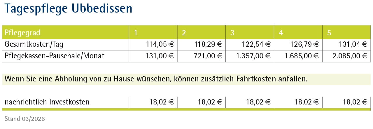 Einführung in die Tagespflege Zielgruppe und Ziele Räumliches Angebot Pflegerische Leistungen Soziale Betreuungsleistungen Preise Kontakt Download
